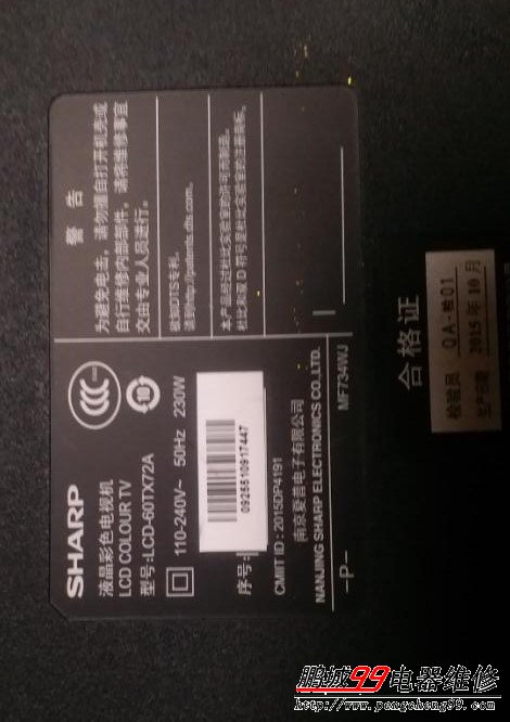 夏普LCD-60TX72A電源板不通電,不開機(jī),指示燈不亮