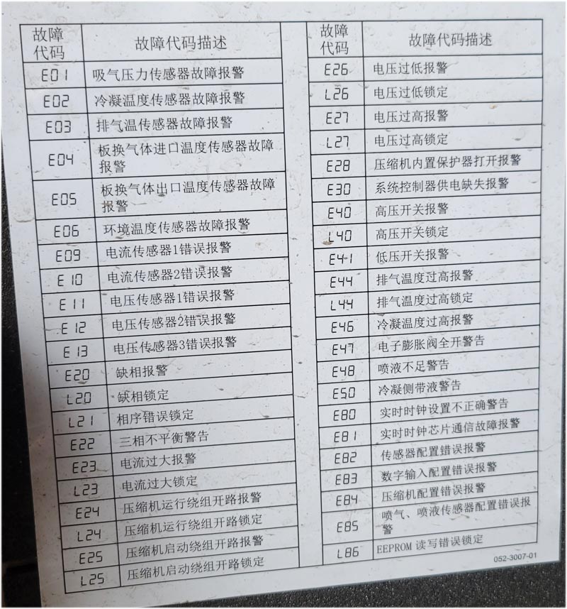 E05——板換氣體出口溫度傳感器故障報(bào)警