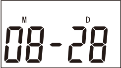 日期顯示界面顯示記錄儀時(shí)鐘的月份和日期,標(biāo)志 “M” 下面的數(shù)據(jù)為月份。標(biāo)志 “D” 下面的數(shù)據(jù)為日期。