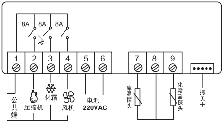 7)端口輸出容量:制冷:8A 除霜:8A 風(fēng)機(jī):8A