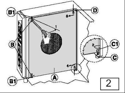 ★ 提起側(cè)板(3),使其從爐腔底部的C固定支架上用力朝(4)的方向移 , 松開側(cè)板上面的螺絲D,用力向下使整塊側(cè)板(6)從固定片(5)處卸下。